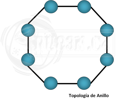 En la siguiente figura se muestra una topología de anillo, el frame viaja en una orden lógico alrededor del anillo, va de una estación a la siguiente, si la estación espera a enviar datos, este es añadido al frame, el frame continua viajando alrededor del anillo y el dato es removido en el host destino, el frame, entonces continua en un solo anillo lo datos viajan en una sola dirección, en un entorno de anillo dual ( dos anillos) cada anillo envía datos en diferente dirección, dos anillos crean redundancia o tolerancia a fallos, lo que significa que si falla alguno de los anillos, el sistema puede seguir operando. Si alguna parte o ambos anillos fallas, una conexión entre los dos anillos puede solucionar el problema.