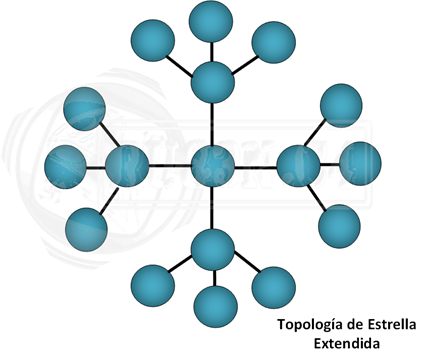 En una topología de estrella extendida, en dispositivo de red central es conectado a los otros dispositivos de red y después los cuales son conectado a las estaciones finales
