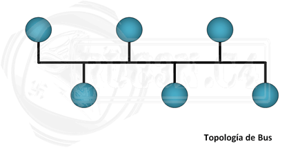 Como se muestra en la figura un bus o bus lineal conecta todos los dispositivos con un solo cable, el final de cable se debe de conectar a un dispositivo u un terminador de lo contrario las señales rebotaran de regreso y causaran errores. Solo un paquete puede ser trasmitido a la vez en un bus, o los paquetes colisionaran y serán destruidos (y tendrán que ser reenviados).