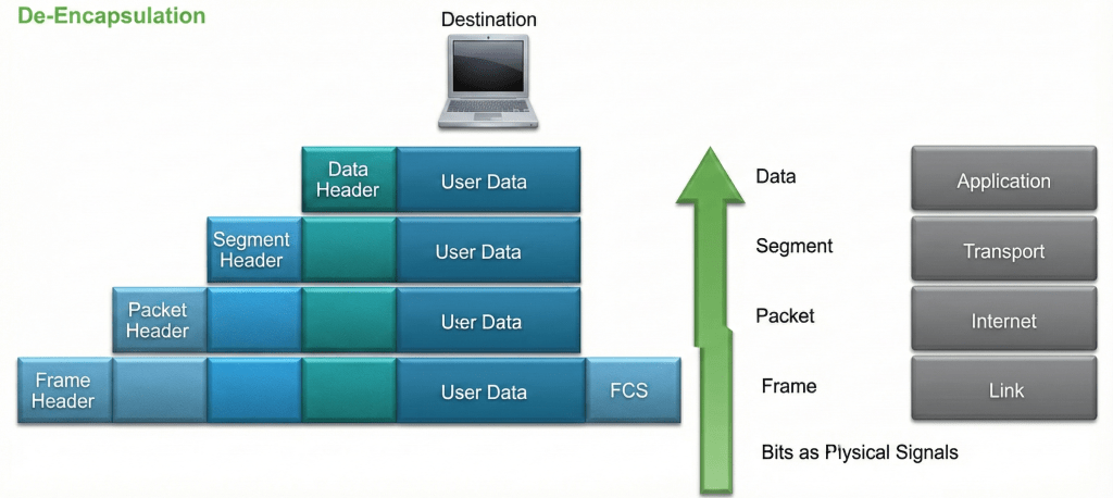 En el dispositivo receptor, ocurre el proceso inverso: la desencapsulación. Es como desempaquetar las cajas. Cada capa lee la información del encabezado que le corresponde, la procesa, elimina ese encabezado y pasa los datos restantes a la capa superior. Este proceso continúa hasta que los datos originales llegan a la aplicación del usuario final, exactamente como fueron enviados.