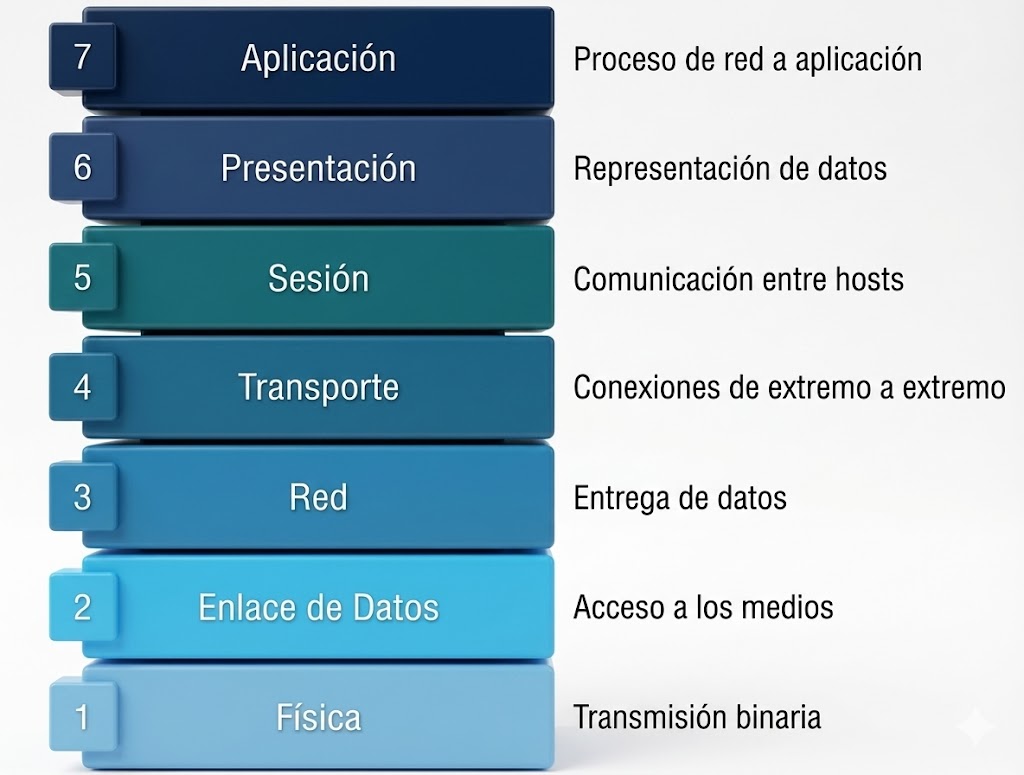 El modelo OSI (Open Systems Interconnection) divide las tareas de red en siete capas lógicas. Estas se agrupan funcionalmente: las capas superiores (5-7) se encargan de la interacción del usuario y de la información, mientras que las capas inferiores (1-4) se encargan de cómo se transfiere este contenido a través de la red.